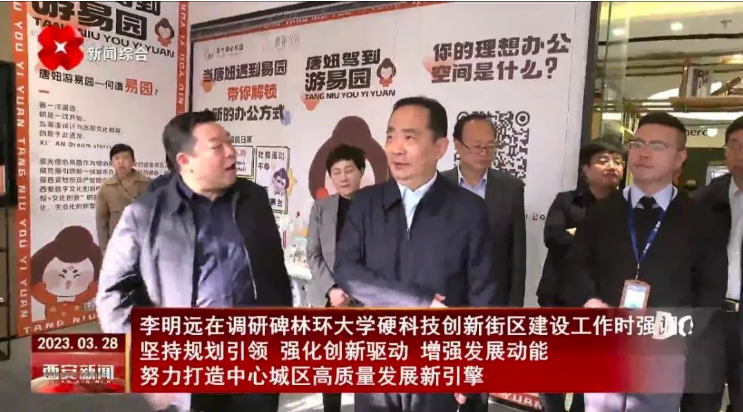 3月28日,西安市委副書記、市長李明遠前往碑林區調研環大學硬科技創新街區建設有關工作,參觀并詳細了解星光德必易園運營模式和現況。