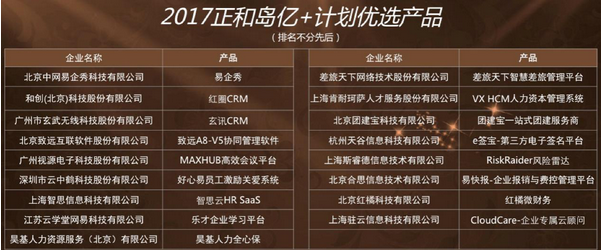 2017年9月,億+計劃二期啟動,462件企業服務產品報名參與。經過嚴格的資料審核和面對面的廠商訪談,40件產品進入終審。聯盟邀請了企業服務領域知名投資人、行業專家和專業媒體等組成終審委員會,圍繞“創新性、專業性、適用性”三要素,根據“企業實力、產品實力、技術能力、客戶服務能力、需求響應能力”五個評價維度進行了綜合評估,最終評選出紅圈CRM、致遠A8-V5協同管理軟件、視源股份MAXHUB高效會議平臺、易企秀云學堂樂才企業學習平臺等17件優秀產品。