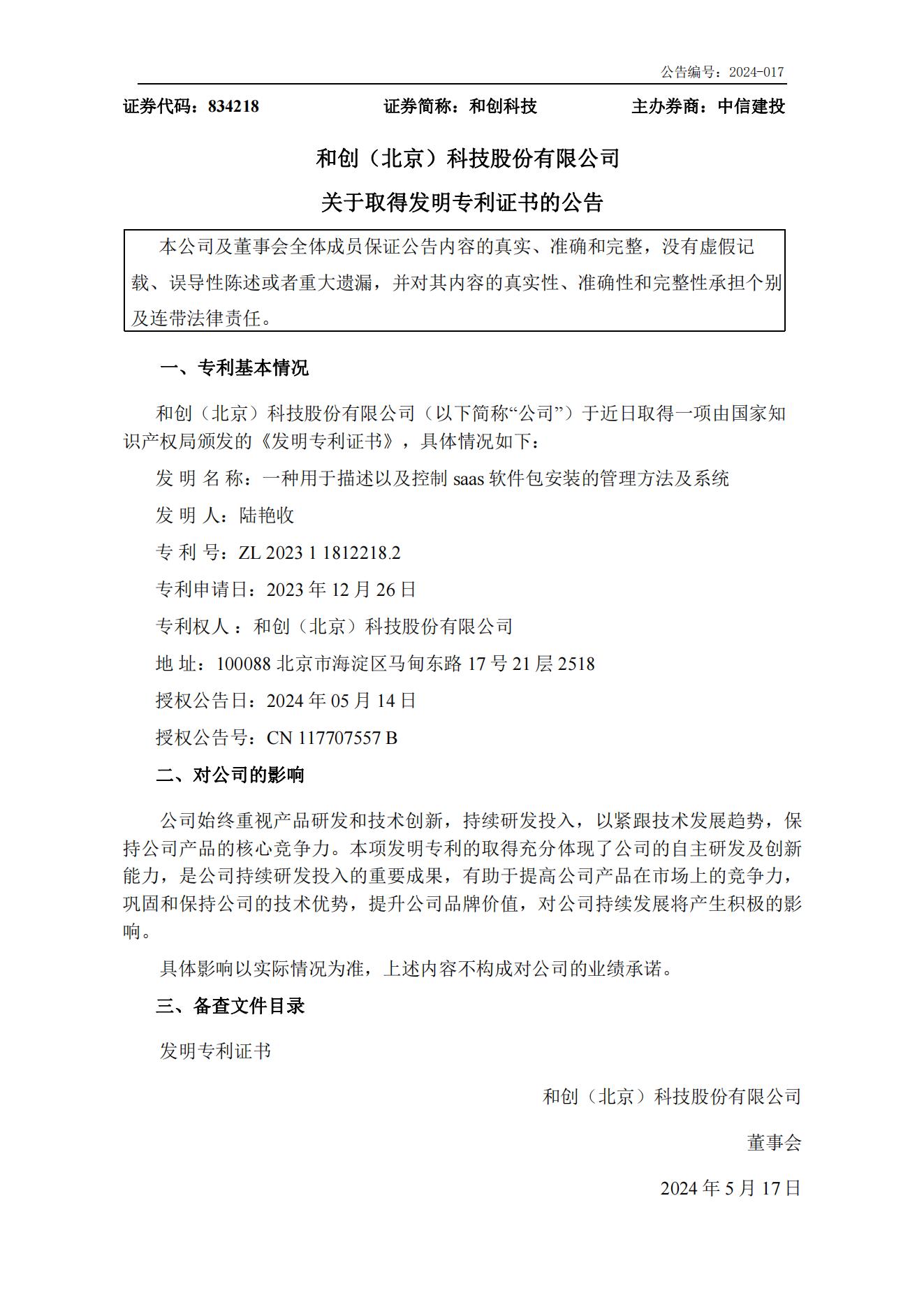 近日,我們又迎來了2024年的第三項(xiàng)發(fā)明專利!發(fā)明名稱為:一種用于描述以及控制saas軟件包安裝的管理方法及系統(tǒng)