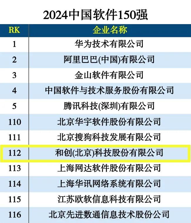 紅圈新聞 | 喜報(bào)!恭喜和創(chuàng)科技入選“2024中國(guó)軟件150強(qiáng)”