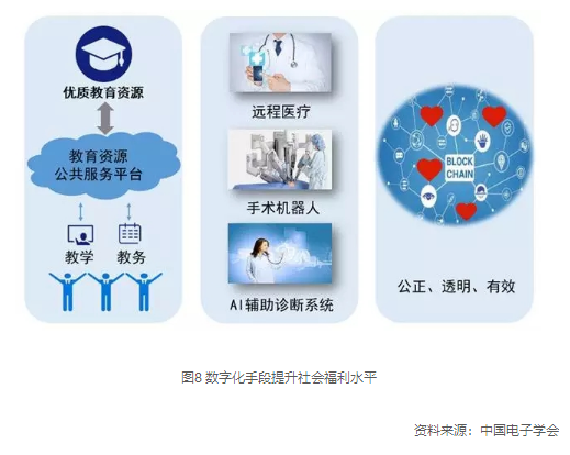 滿足人類對美好生活的向往和追求,是數字經濟孕育、誕生、發展的重要動力及目標。大幅提升公共資源供給效率,顯著增強公共服務效用,進一步推動教育、醫療、慈善等公共事業的便捷化、普惠化、均等化,是數字經濟在創新變革生產方式、促進實體經濟提質增效之外的關鍵著力點和突破口。多種類型、多個領域的網絡化、智能化的教育資源公共服務平臺將被搭建,面向公眾持續擴大優質教育資源覆蓋面。互聯網遠程診療將成為高頻次、低門檻、易得可選的常規醫療方式,并引入人工智能助手有效提升診療精準度,緩解全球性的醫療資源緊張難題。區塊鏈技術將在慈善資金募集和捐贈過程中得到大規模應用,強化互信關系,減少交易成本,溯源資金去向,保障慈善事業的公正、透明、有效。
