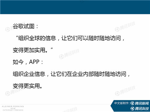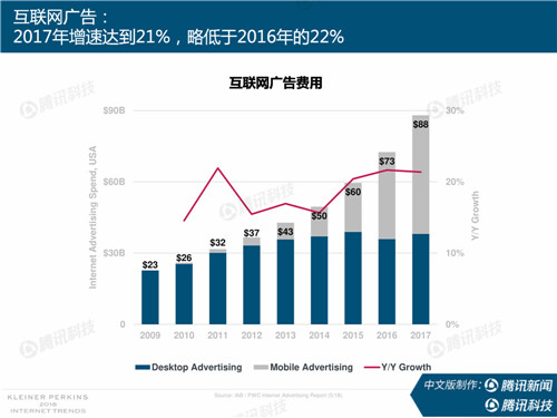 2018年互聯網趨勢報告正式發布,本次報告全面概括了2017年全球互聯網發展趨勢,從用戶、電商、廣告、消費支出、數據獲取和優化、經濟增長驅動力、中國市場、企業軟件等12個章節。