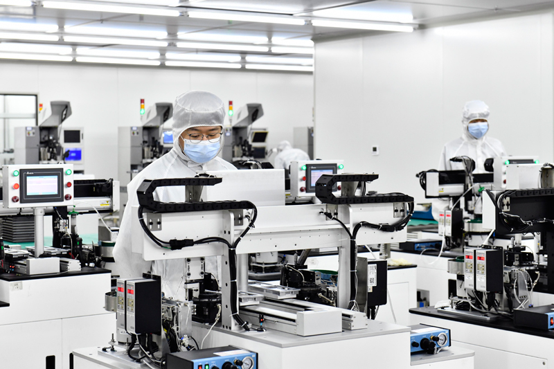 2023年6月29日,在山東省日照高新技術產業開發區智慧微電產業園,工作人員在生產濾波器。新華社記者 郭緒雷 攝