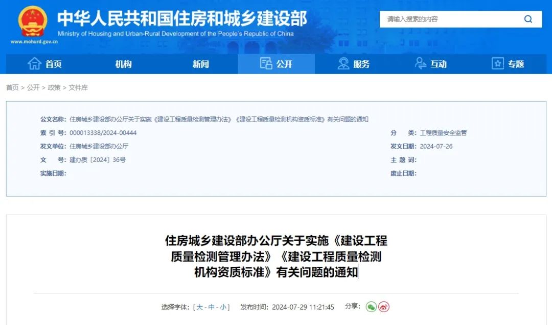 7月29日,住房城鄉(xiāng)建設(shè)部辦公廳發(fā)布關(guān)于實(shí)施《建設(shè)工程質(zhì)量檢測(cè)管理辦法》《建設(shè)工程質(zhì)量檢測(cè)機(jī)構(gòu)資質(zhì)標(biāo)準(zhǔn)》有關(guān)問題的通知。通知提出:為保障建設(shè)工程質(zhì)量檢測(cè)新舊資質(zhì)平穩(wěn)過渡,新舊資質(zhì)過渡期延長(zhǎng)至2024年10月31日。