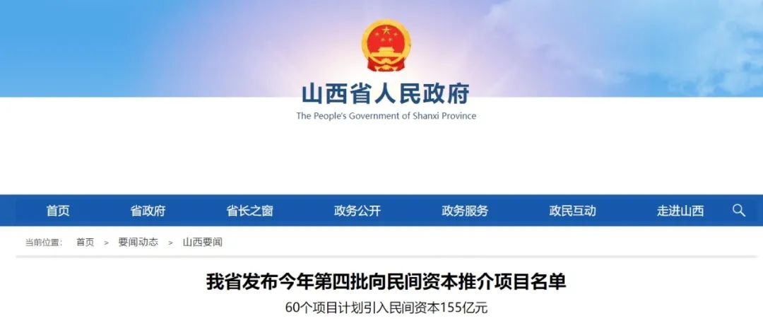 行業(yè)政策?|?總投資308億元!山西公布新一批向民間資本推介項(xiàng)目!