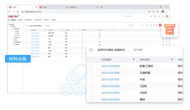 紅圈材料管理擬頁面