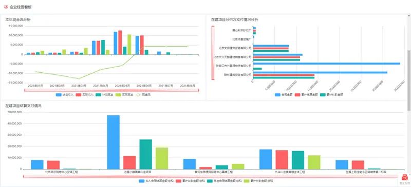 紅圈系統(tǒng)為企業(yè)建立了多維度的經(jīng)營(yíng)數(shù)據(jù)可視化報(bào)表(包含合同金額/回款金額/開(kāi)票金額/支付金額/動(dòng)態(tài)利潤(rùn)金額等),通過(guò)精準(zhǔn)詳細(xì)的常規(guī)數(shù)據(jù)報(bào)表、曲線圖報(bào)表、柱狀圖報(bào)表等多種展示形式,幫助管理層輕松掌握每一個(gè)關(guān)鍵數(shù)據(jù),不受時(shí)間地點(diǎn)限制,可實(shí)時(shí)查看每個(gè)項(xiàng)目的經(jīng)營(yíng)情況。