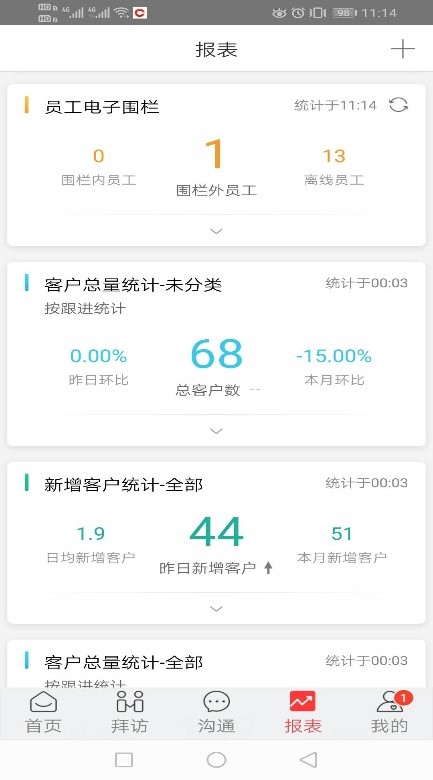 所有的匯總統計均在報表中顯示,包括常見的員工定位軌跡報表等 如果需要增加或者減少顯示報表,可以在右上角“+”號,進行相關報表訂閱,訂閱分為:已添加或者可添加。如果需要可以直接點擊可添加報表中的名錄,會自動添加到已添加欄位。